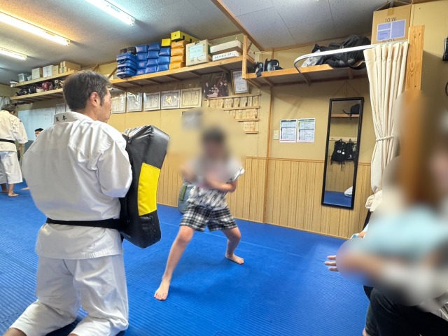 小学1年と小学4年姉弟が体験です2025/09/28 3:47 pm9月27日(土) 今日は、小学1年と小学4年の姉弟が初めての体験に来てくれました。 二人ともとっても元気が良くて、すぐに馴染んでくれましたよ! きっと上手になると思います。お姉ちゃん構えが!マジキタ――(゚∀゚)――!! 強そうです。ヤバいヤバい(°_°;縦拳でしっかり突けています!初めてなのに体重も前に乗っててグー!👍そして弟君も気合&パワー出しまくりでこれまたグー!👍こりゃ洛南拳士も負けられません。しっかりミット突き!気合だ!いいね!>> 3人