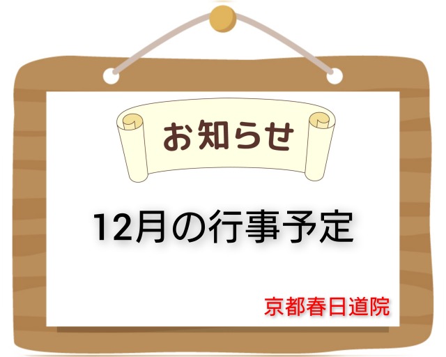 12月の京都春日道院に関する行事の予定を以下にお知らせします。