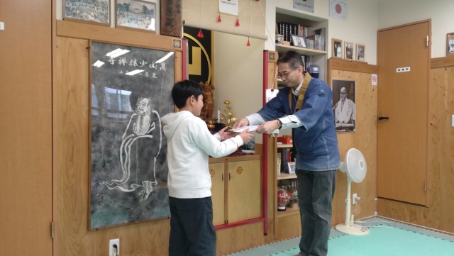 先ずは、昨年の参座日数の多い拳士の表彰です。